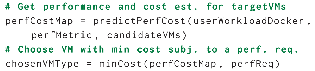 Section 3에 설명된 대로 온라인 단계에서 사용자는 PARIS에 어플리케이션의 대표적 워크로드인 task, 성능 metric 그리고 후보 VM 유형을 제공해야한다.
