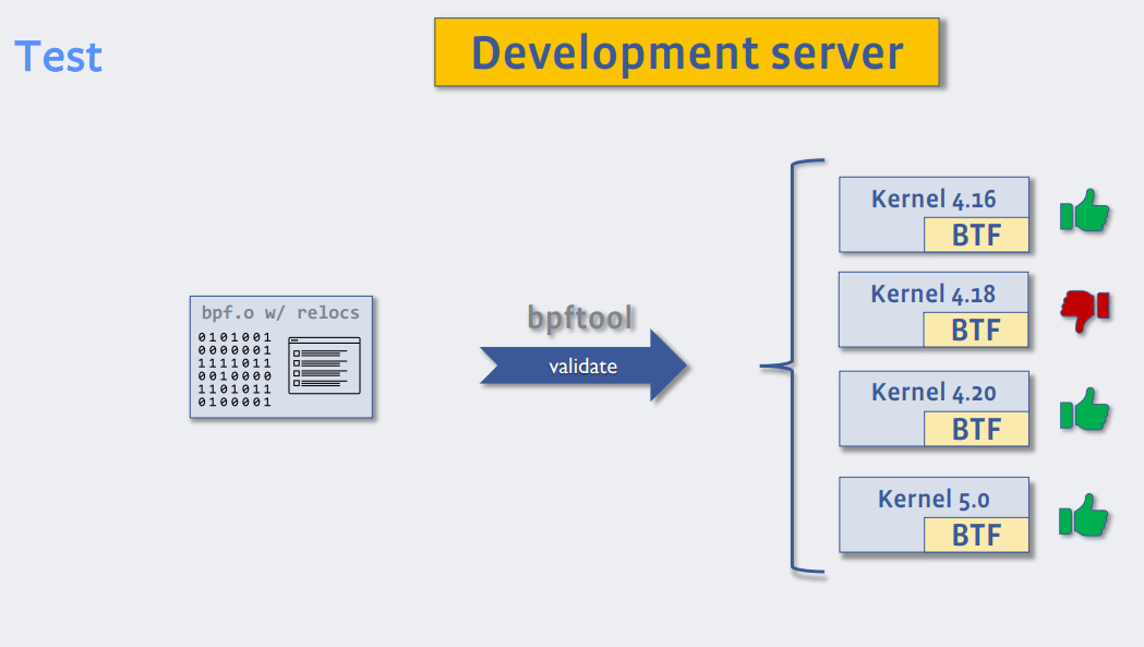 - BPF 로더(libbpf)는 대상 호스트의 특정 커널에 컴파일된 BPF 코드를 조정하기 위해 커널과 BPF 프로그램의 BTF를 연결시킨다.