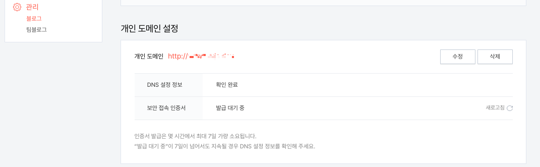 2. 블로그 관리 페이지에서 도메인 등록